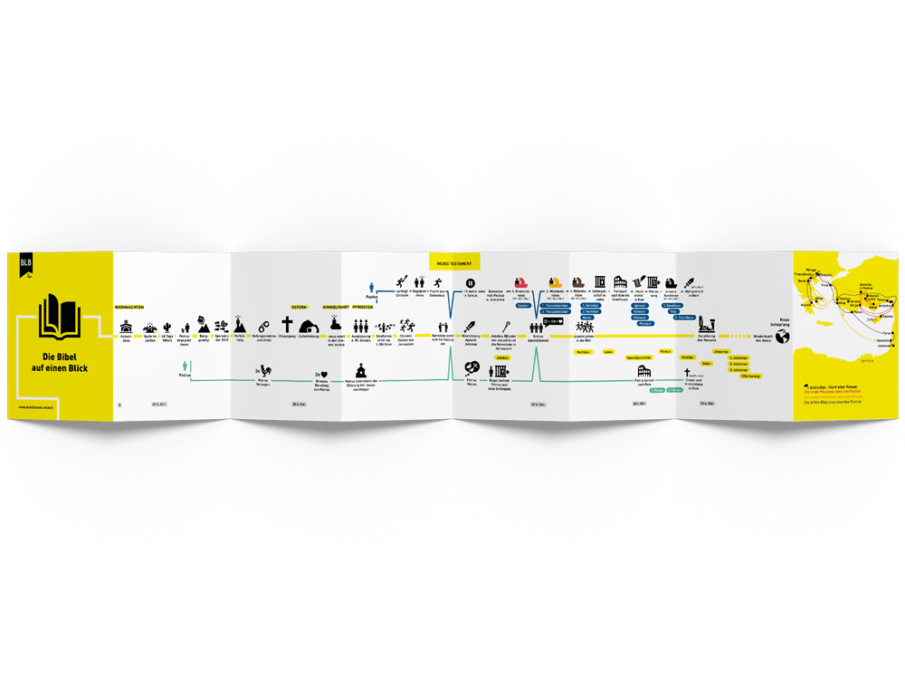 Wem die Abfolge der biblischen Geschichten durcheinander gerät, dem hilft dieses Leporello weiter. Mit diesem praktischen Bibellese-Begleiter behält man den Überblick über die wichtigsten Ereignisse im Alten und Neuen Testament.