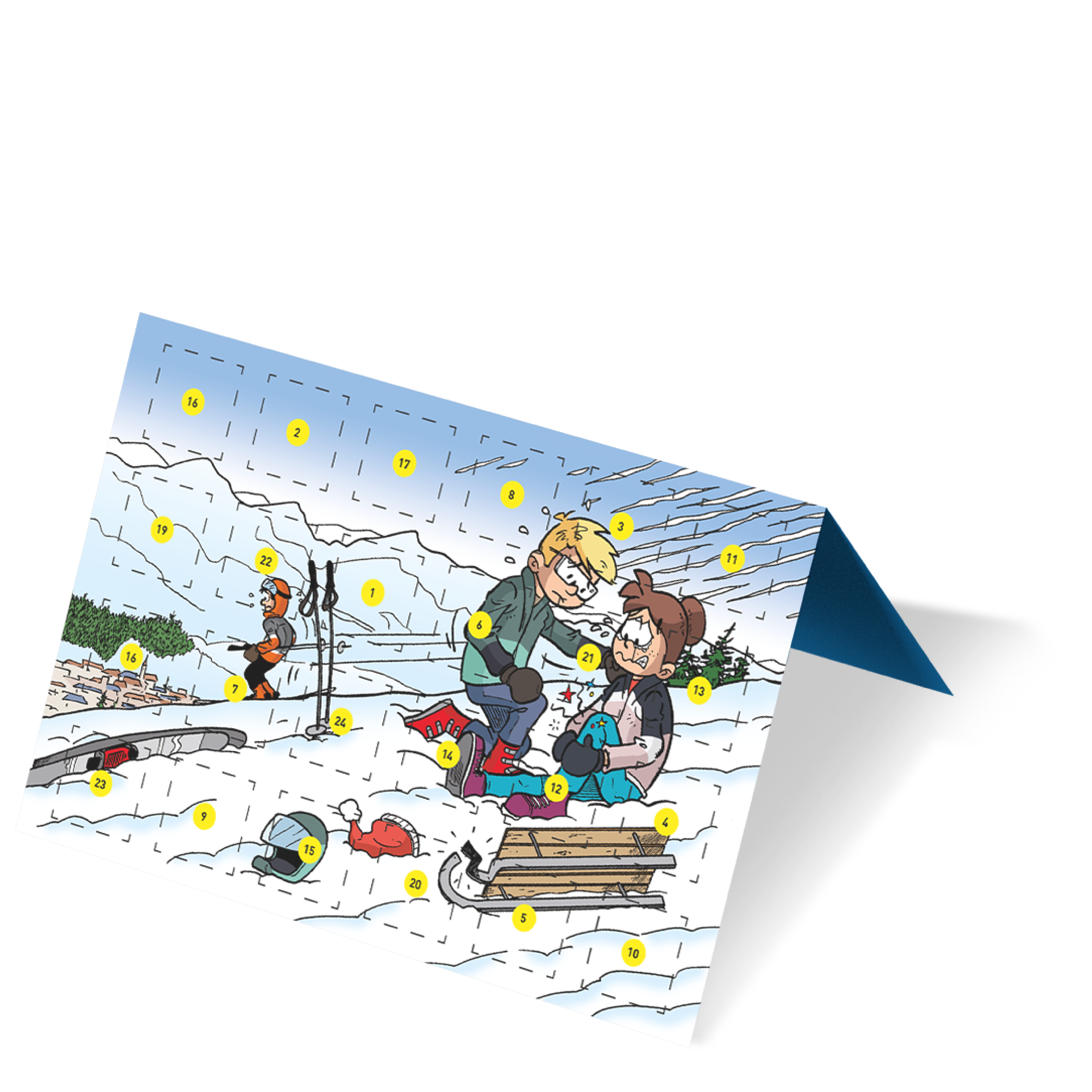 Ein Verteil-Adventskalender mit spannendem Hörspiel zum Thema «Freundschaft». Hinter jedem der 24 Türchen verbirgt sich ein QR-Code und ein Bild zur Geschichte. Mit dem QR-Code gelangt man zum dazugehörenden Abschnitt des Hörspiels und zu weiteren ergänzenden Inhalten wie Rätseln, Spielen oder Basteltipps.