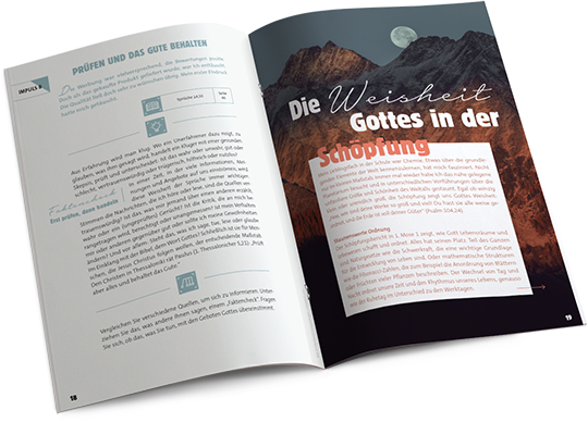 Weisheit – ein wichtiges Thema, in dem es um ganz praktische Fragen geht: Wie kann mein Leben gelingen? Wie kann ich gute Entscheidungen treffen? Darauf Antworten zu finden inmitten der Flut individueller Lebenskonzepte, ist herausfordernd. Dieses Heft möchte Sie in 18 inspirierenden Bibel-Impulsen einladen, Gottes Weisheit für Ihr Leben zu entdecken. Dazu werfen wir gemeinsam einen Blick in das Buch der Bibel: die Sprüche.