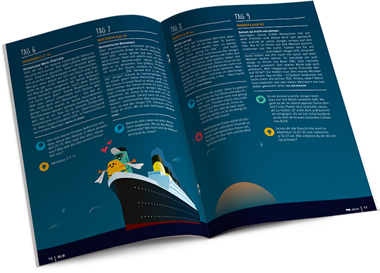Jede der 28 Einheiten besteht aus einer Bibelstelle zum Nachlesen und einem Kommentar. Dazu gibt's viele spannende Beiträge, Zitate und Grafiken rund um das Thema.
