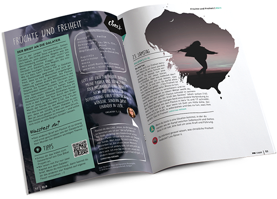 Hier gibt’s für jeden Tag eine Bibelstelle, Erklärungen und spannende Infos, Pur beleuchtet aber nicht nur die Hintergründe, sondern liefert auch motivierende Impulse für den Glauben im Alltag und lässt unterschiedliche Menschen zu Wort kommen, Das Herzstück der Zeitschrift, Bibellesen, wird außerdem von verschiedenen Extras begleitet – unter anderem von Artikeln zu biblischen Themen, Rätseln, Comics, Leserberichten und Interviews, Zudem macht das Design von Pur richtig Laune: auf jugendlich-frische und witzige Art und Weise ergänzt es die Inhalte und sorgt für Abwechslung,