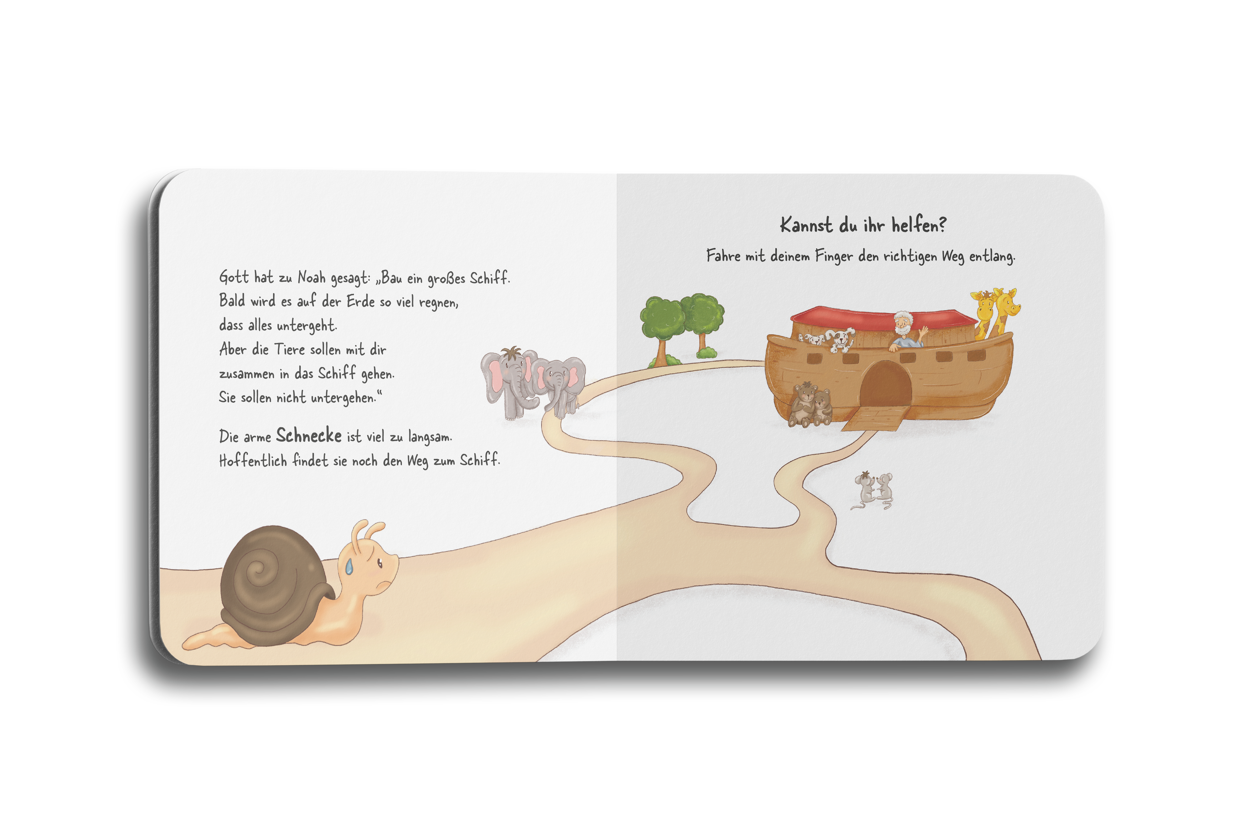 Mit diesem wunderschön illustrierten Bilderbuch entdecken Kinder ab 2 Jahren erste Bibelgeschichten. Und das Schöne: sie können selbst mitmachen mit schütteln, drehen, klopfen, rufen oder streicheln. In den 15 Geschichten lernen sie unter anderem Adam und Eva, Noah, Josef, David, Jesus, den barmherzigen Samariter und den guten Hirten kennen und erleben, dass Jesus alle Kinder lieb hat.
